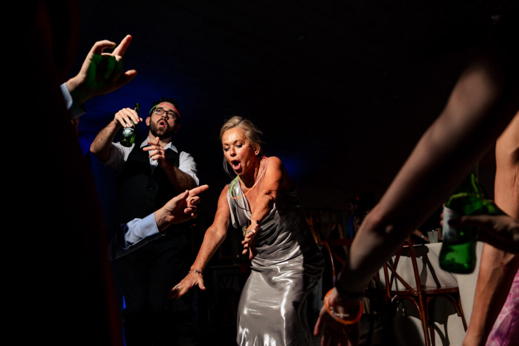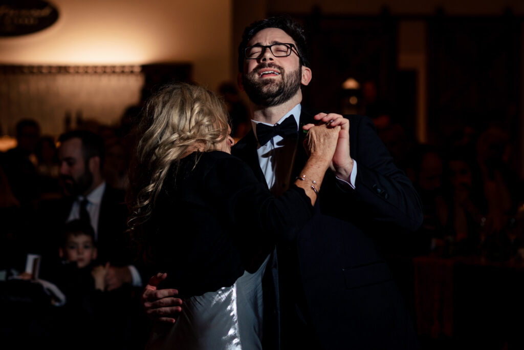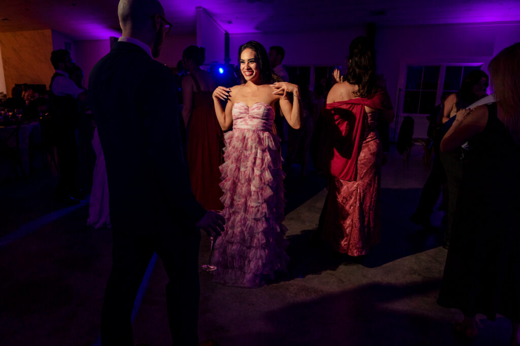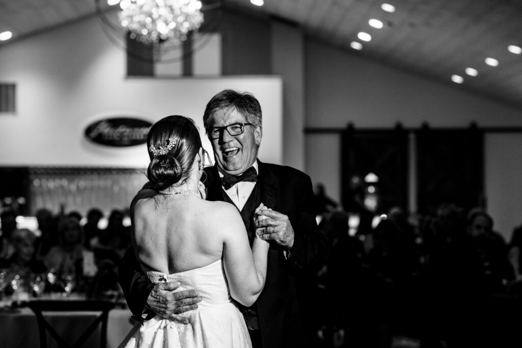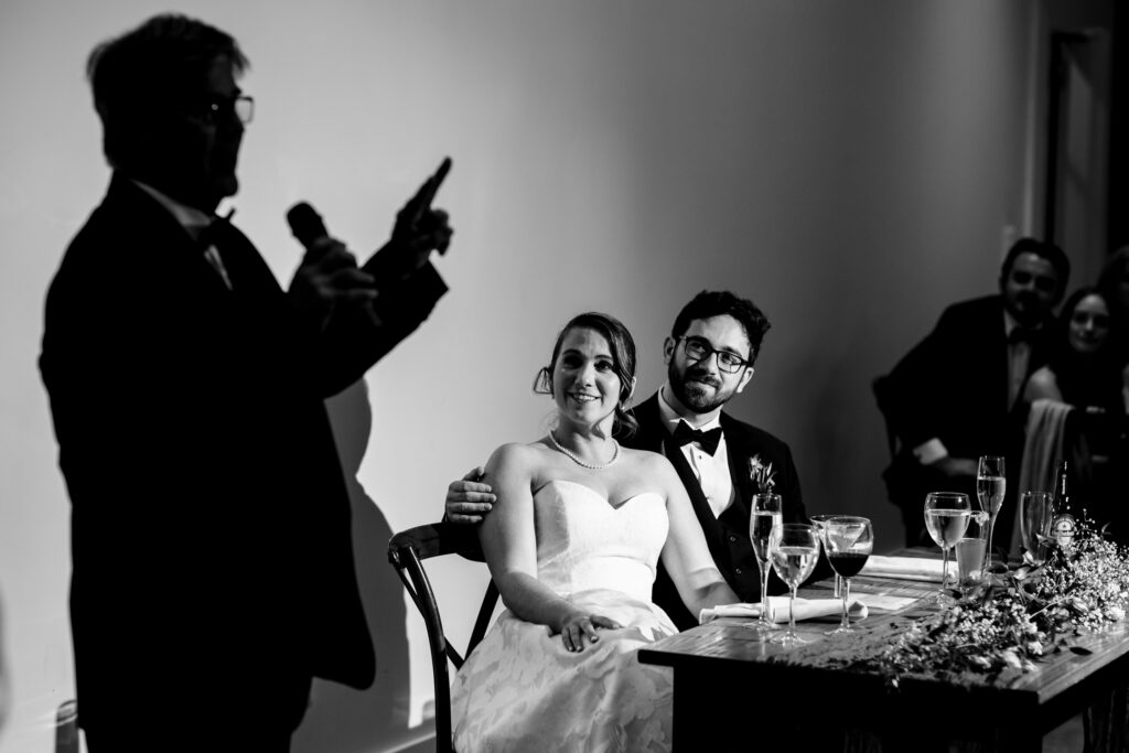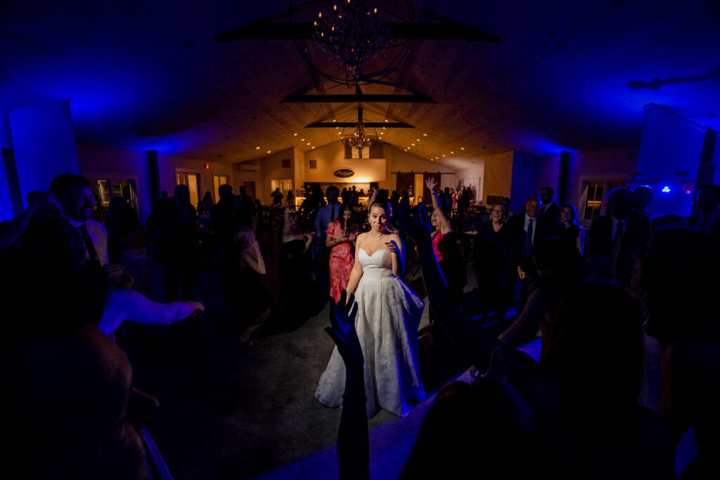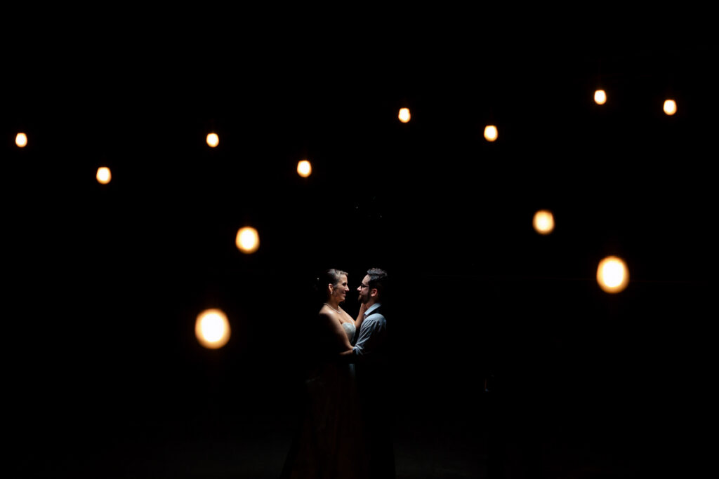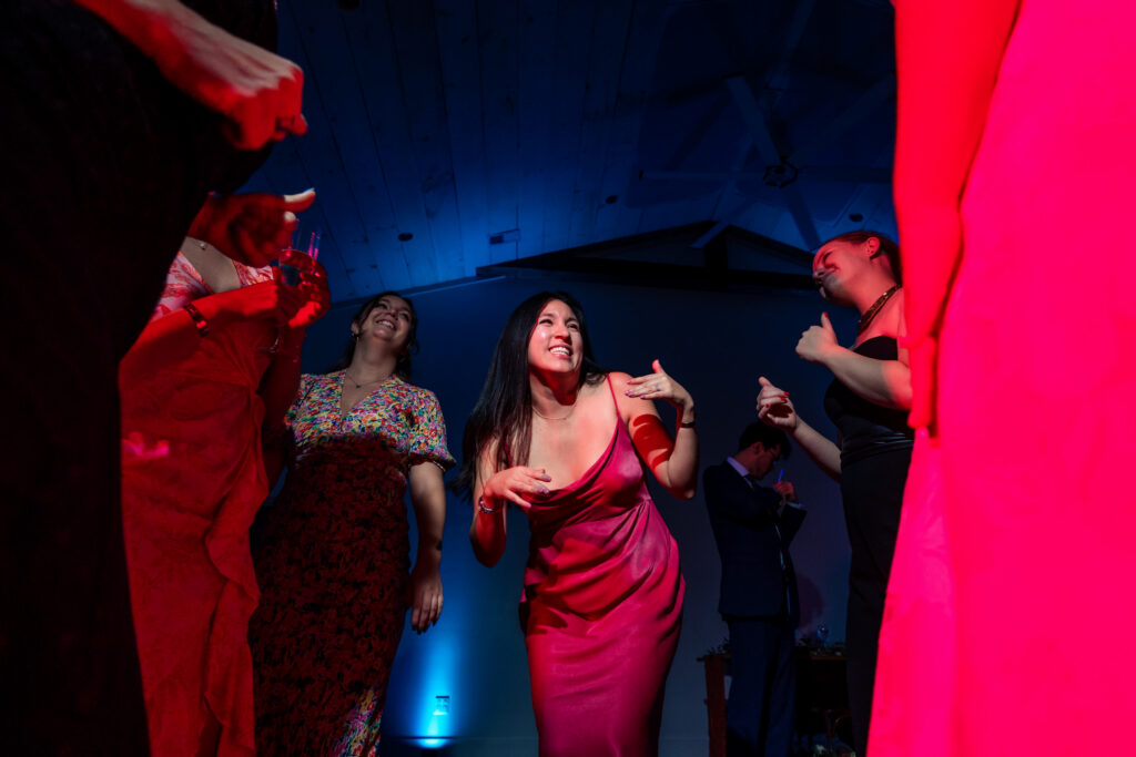 Cocktail hour moved into the Bar and Barrel Room, where bistro lights strung across the brick patio cast a warm glow as guests enjoyed Fleetwood’s estate wine and catering by Monk’s BBQ. As the evening shifted to The Loft, the reception space revealed itself as the blank canvas it was always meant to be — long modern farm tables, candlelight, and Poppy’s florals trailing down the center. Black Tie DMV kept the dance floor full from the first song to the last.