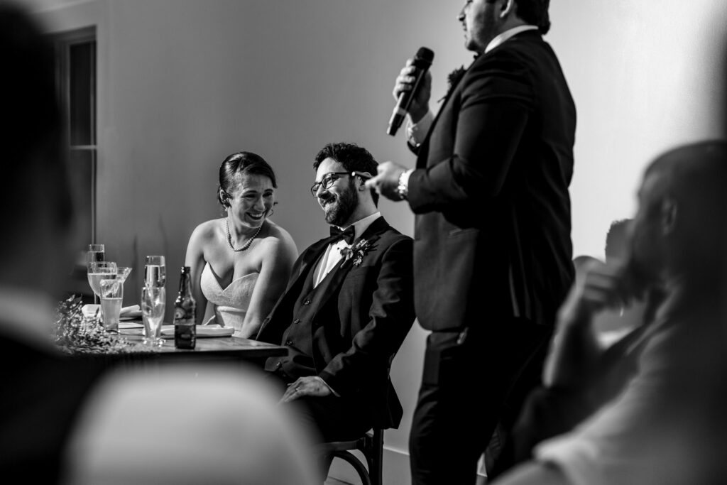 The morning began in Fleetwood’s dedicated getting-ready suites, where makeup artist @jdmakeupartist gave McKenna a warm, refined finish that complemented both the season and the venue’s natural tones. Her gown, sourced from Ava Laurenne Bride, and the ring from Pave Jewelers rounded out a bridal look that felt entirely her own.