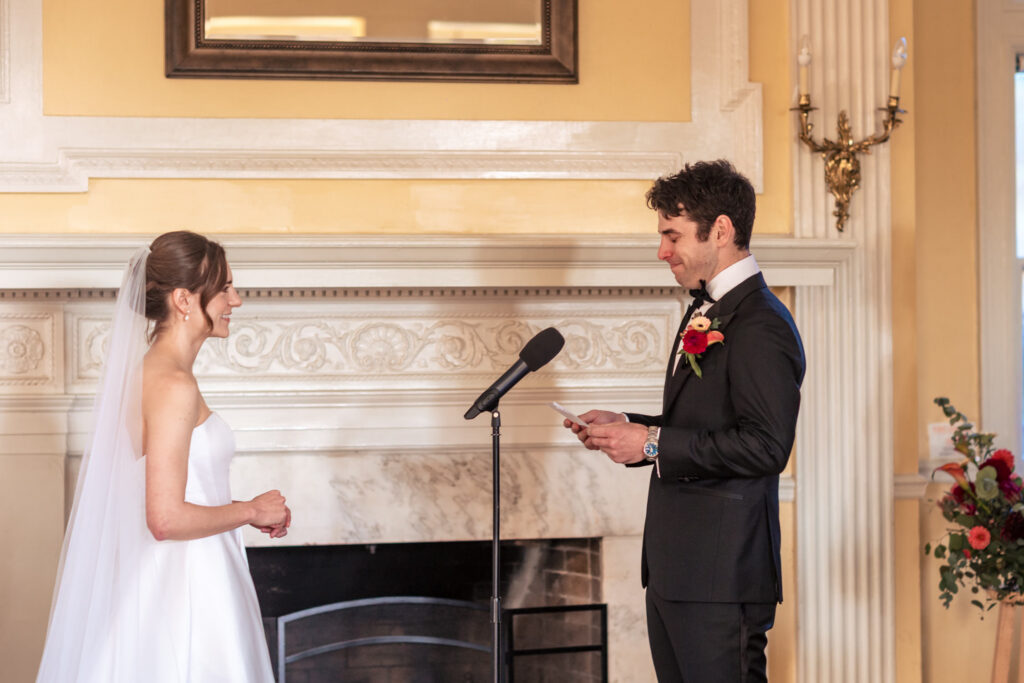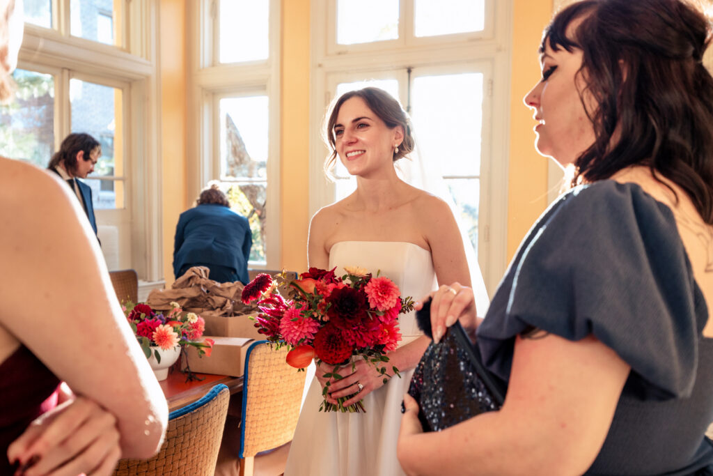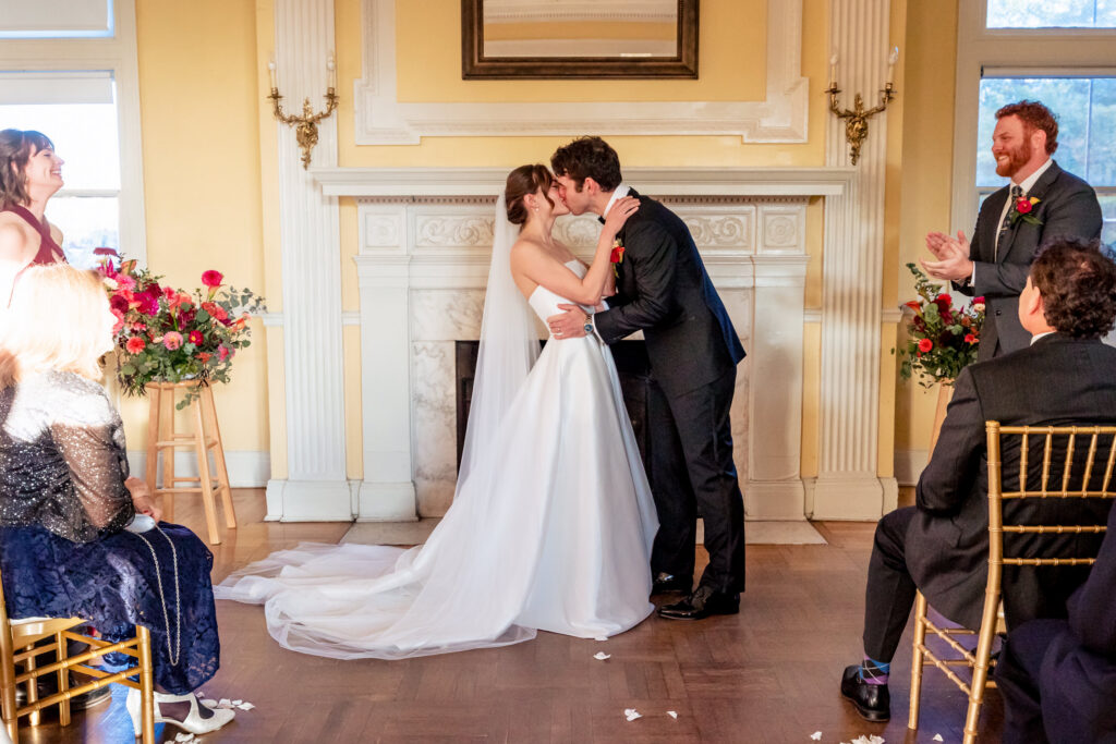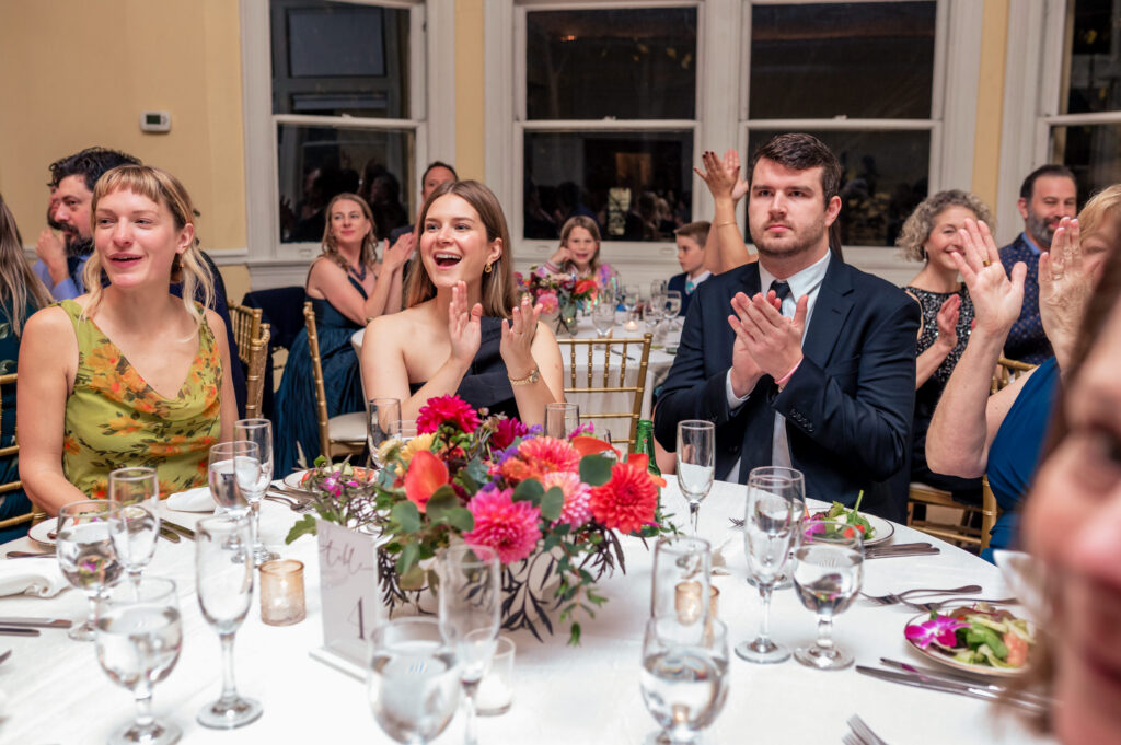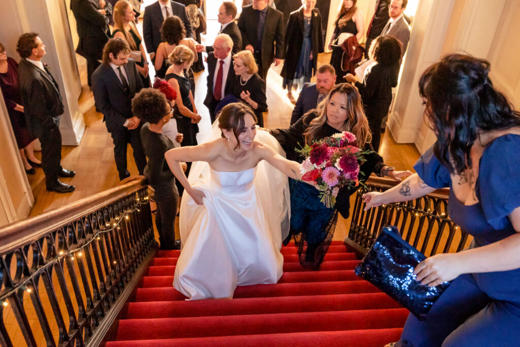 Hair and makeup by Johanna Nettle enhanced the bride’s look with a refined, natural finish that complemented the historic interior, and officiant Christina Hosenfeld led a ceremony that reflected the couple’s values with clarity and warmth.