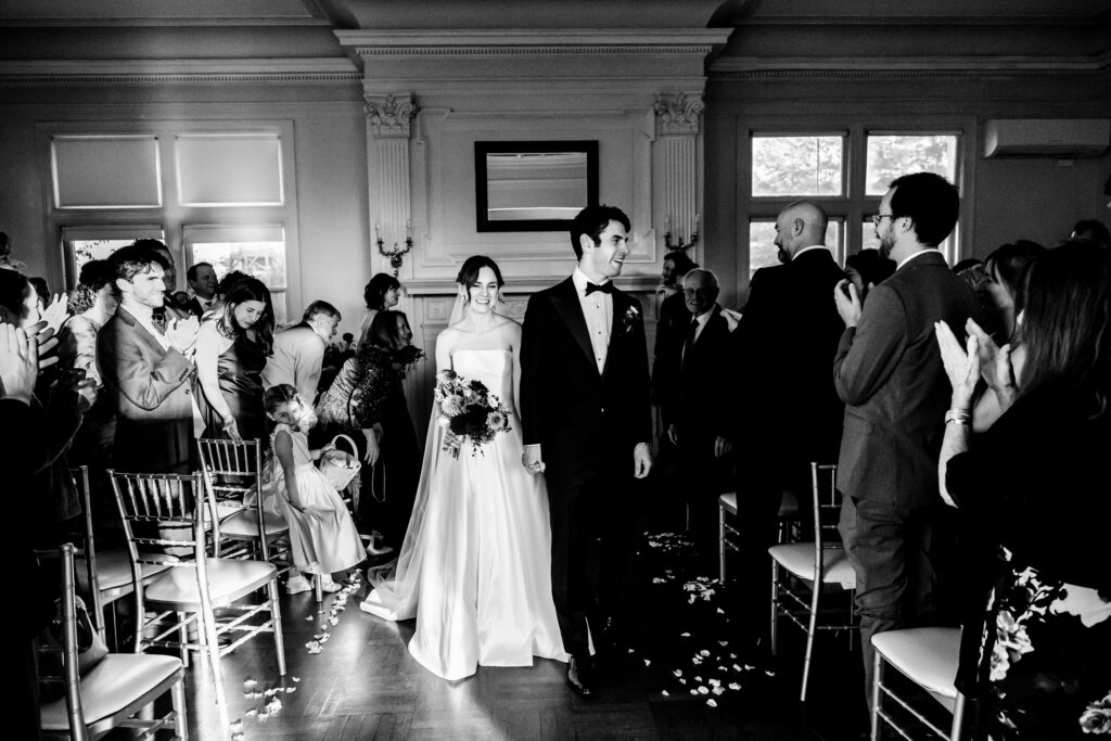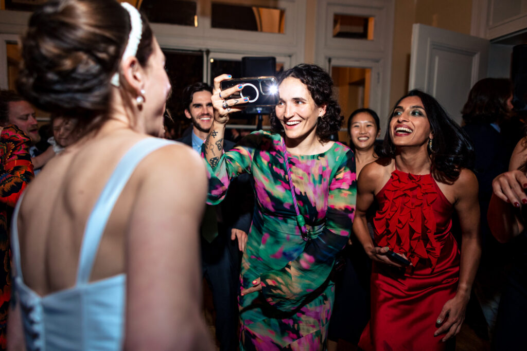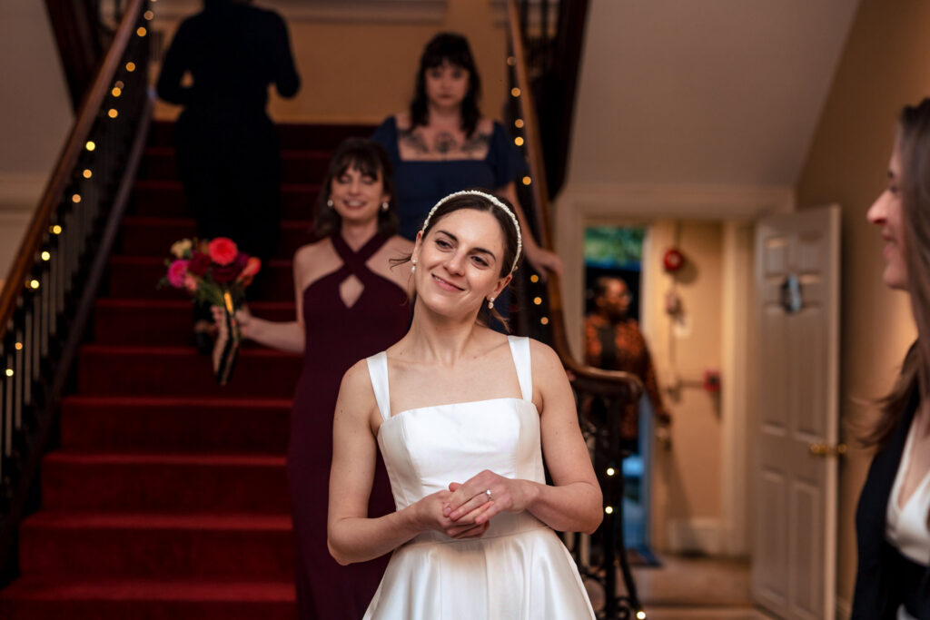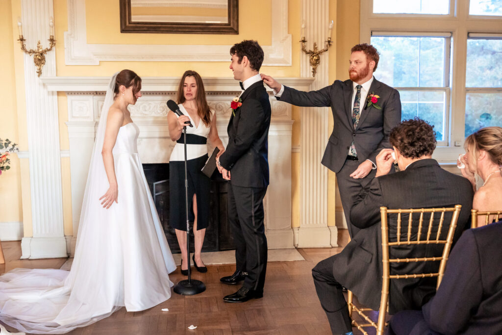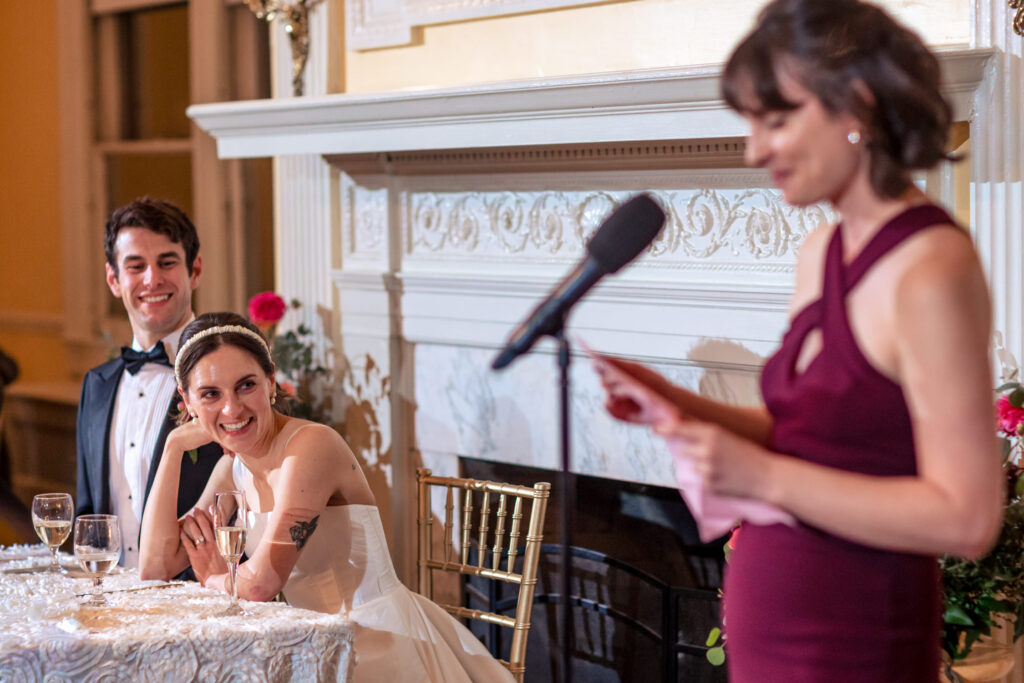 Hair and makeup by Johanna Nettle enhanced the bride’s look with a refined, natural finish that complemented the historic interior, and officiant Christina Hosenfeld led a ceremony that reflected the couple’s values with clarity and warmth.