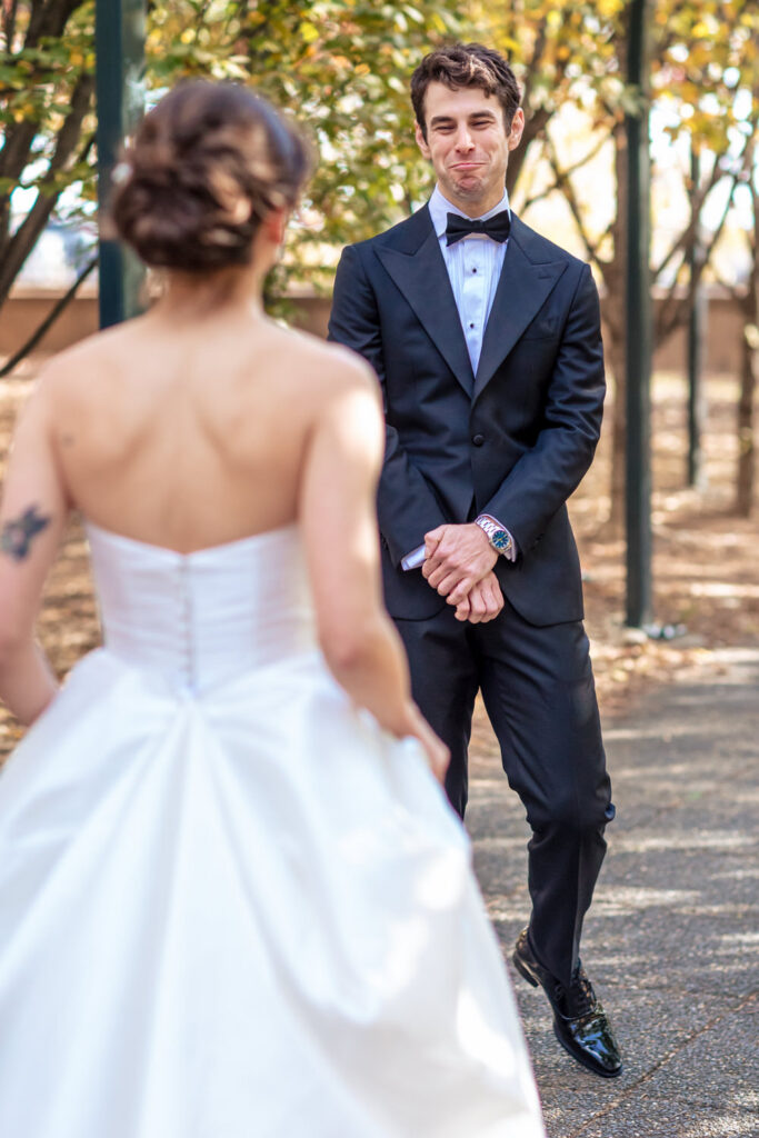 They began the day with a first look at Meridian Hill Park, also known as Malcolm X Park, a location defined by terraced steps, a cascading fountain, and sweeping views framed by mature trees. The decision created space for an intimate moment before the ceremony while also securing portraits surrounded by peak foliage.