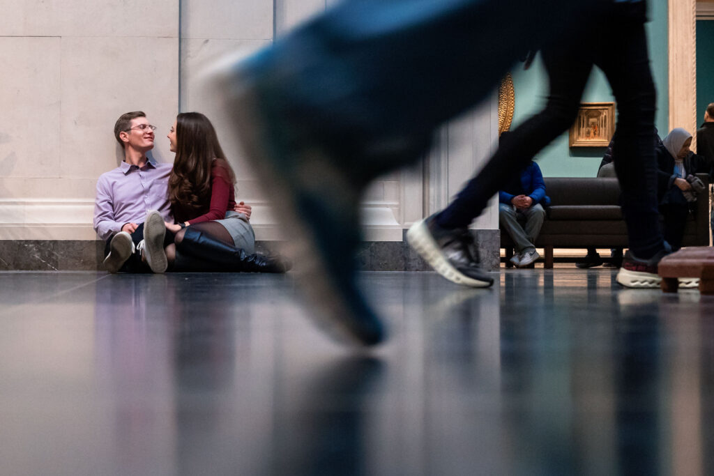 As a proposal photographer, I believe that planning a proposal at the National Gallery of Art is one of the most elegant indoor options in Washington, DC. This location offers controlled lighting, architectural beauty, and protection from unpredictable weather, all while keeping the moment intimate and meaningful.