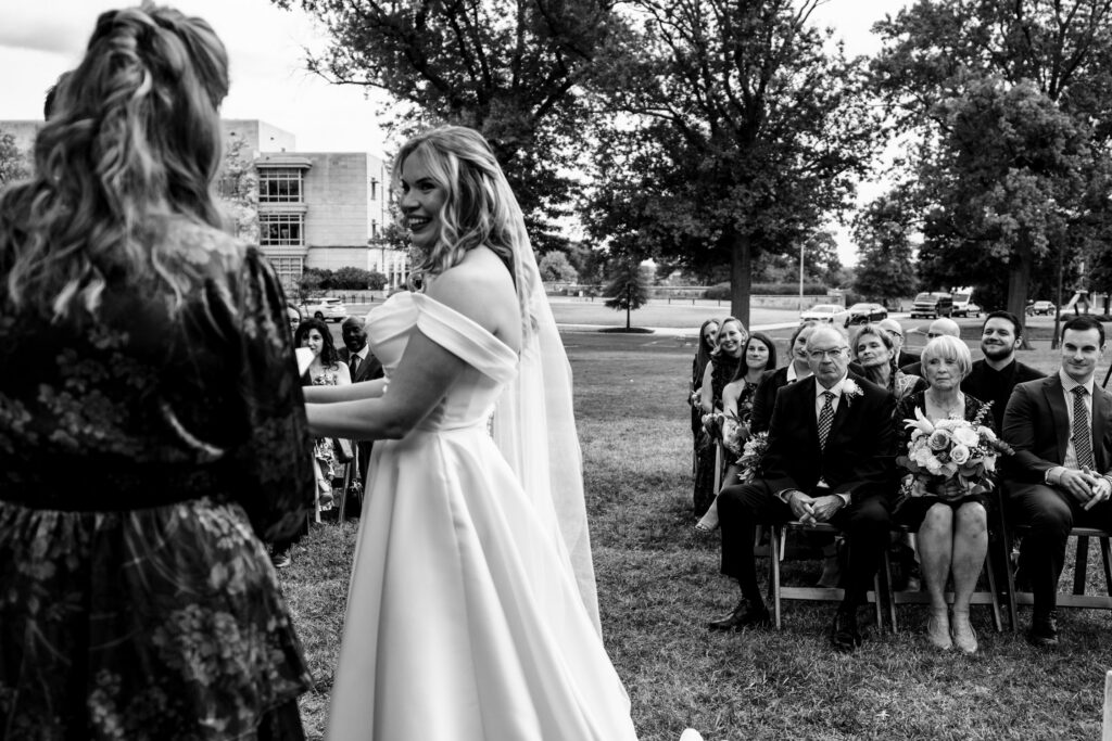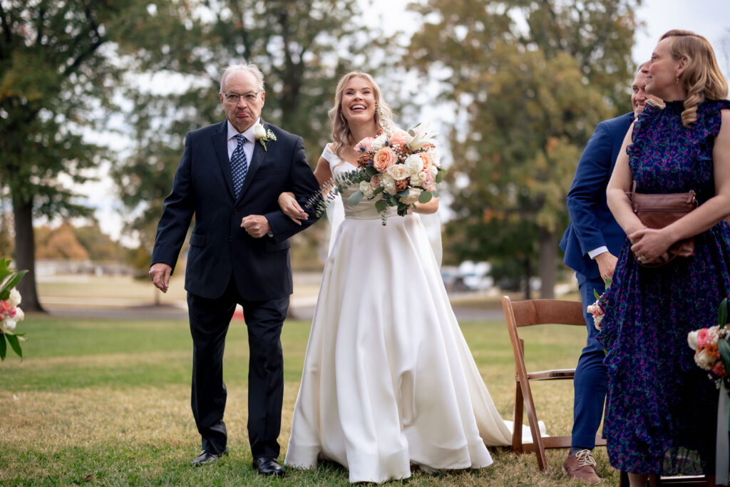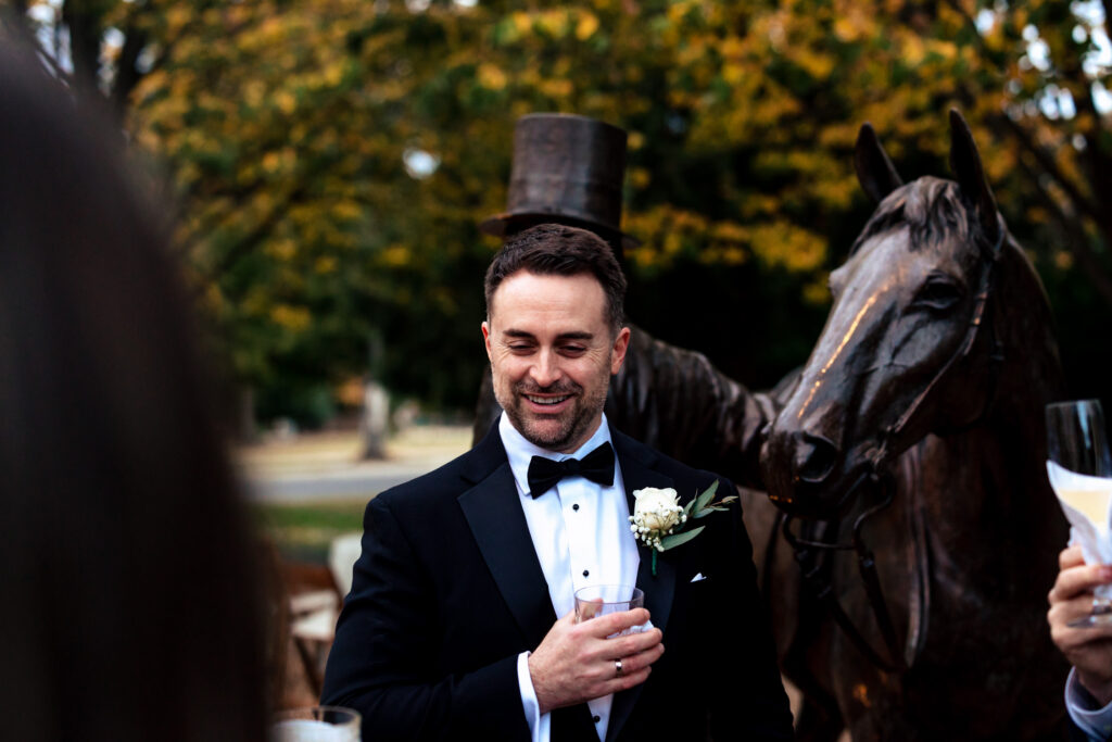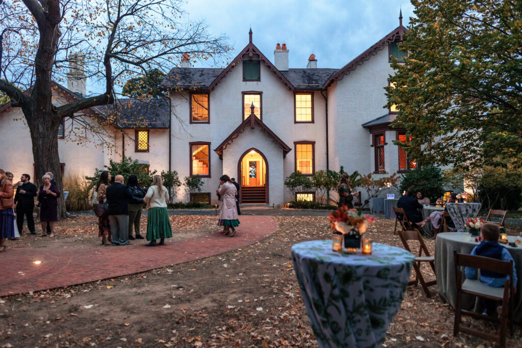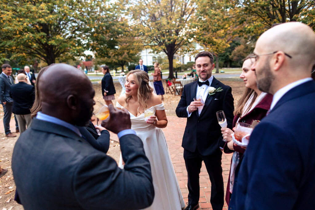 October light in DC is beautiful, so we stepped onto the lawn for portraits. Just a short window outside. Soft fall colors. Crisp air. Then back in for cocktail hour and dinner under candlelight. The flow felt effortless because everything was centered in one place.
