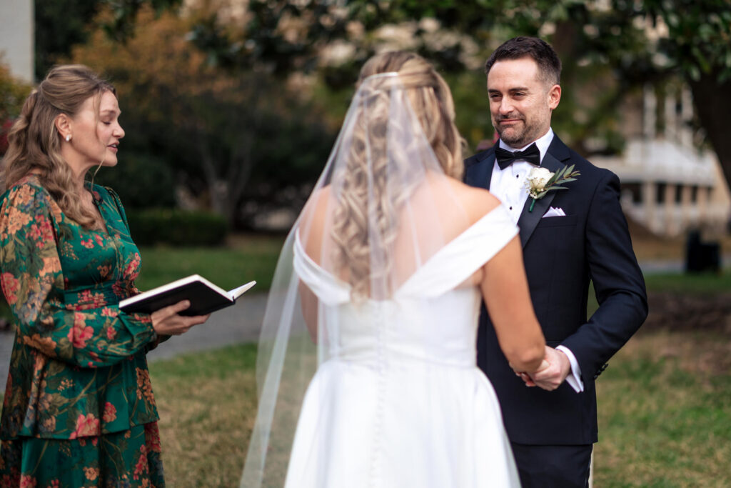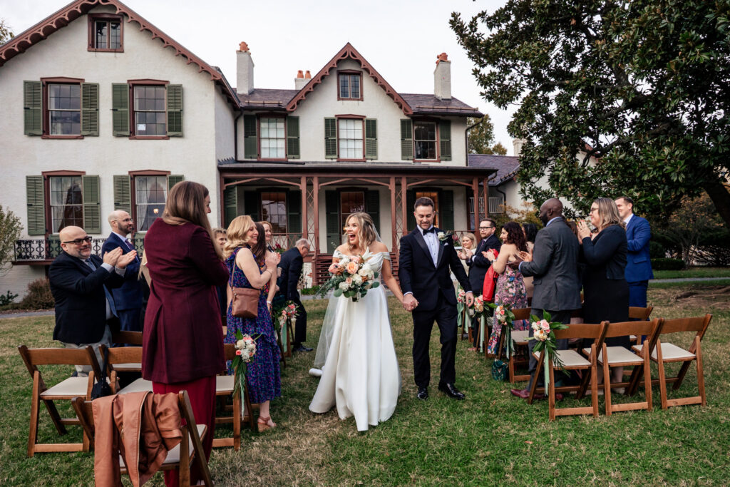 They chose to keep the ceremony and reception indoors at President Lincoln’s Cottage, which created a warm, elegant atmosphere from start to finish. They saw each other for the first time at the aisle, and with only 25 guests, you could feel the emotion ripple through the room.