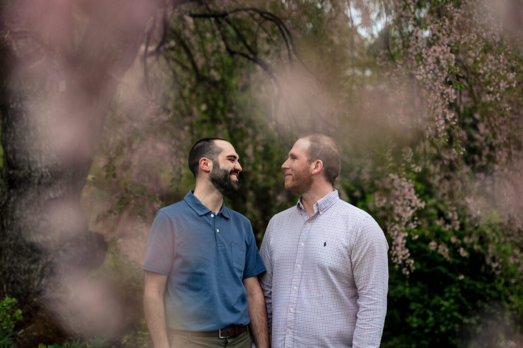 Planning a surprise proposal at the National Cathedral during cherry blossom season is already a challenge—but throw in a rainy forecast, and it becomes unforgettable! This LGBTQ surprise proposal in Washington, DC was nothing but truly beautiful, but… Austin had everything perfectly set for a romantic moment in the cathedral gardens, surrounded by blooming cherry trees. When the rain started, Jason almost bailed on the plan, insisting they skip the garden altogether.