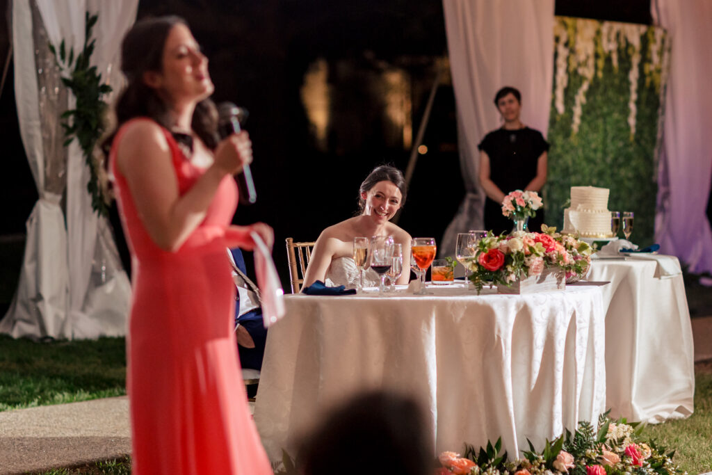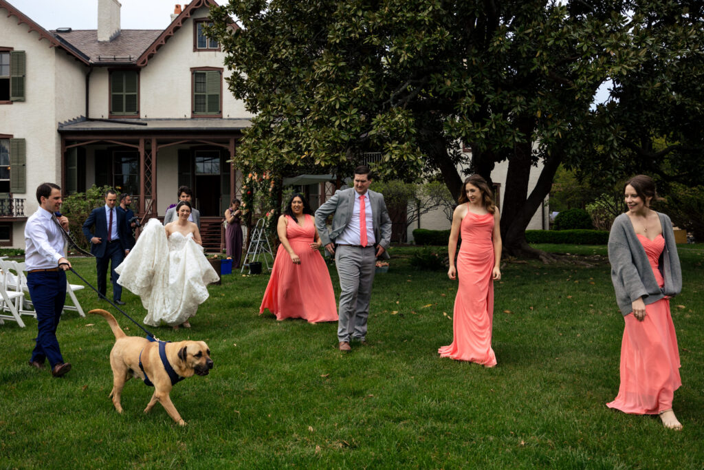 Family was at the heart of everything. These two chose to share a first look together on the back lawn with their dog Henry, creating a quiet, emotional moment before the festivities began. Their Jewish ceremony took place under a chuppah on the front lawn, surrounded by spring blooms and meaningful traditions.