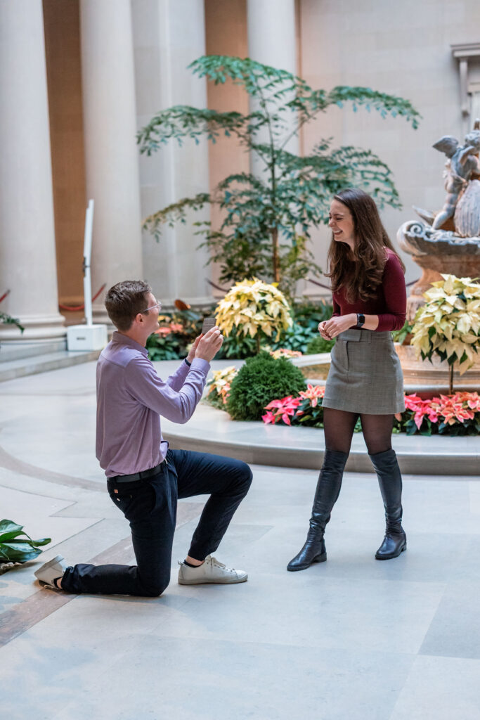 Planning a proposal at the National Gallery of Art is one of the most elegant indoor options in Washington, DC. This location offers controlled lighting, architectural beauty, and protection from unpredictable weather, all while keeping the moment intimate and meaningful. It’s also a great rain option in case we can’t do it outside anymore. To know more about planning a proposal at the National Gallery of Art, check Erik’s proposal.